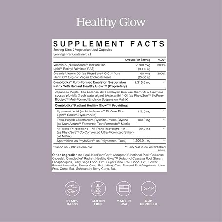 Thông tin sản phẩm CYMBIOTIKA Healthy Glow Anti Aging Supplement, Skin Care & Collagen Production Support for Women and Men, Includes Hyaluronic Acid, Spermidine, Restorative Peptides & Growth Factors, 42 Capsules