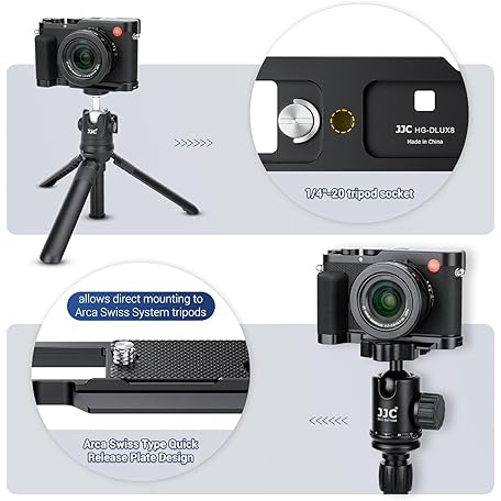 D-LUX8 Handgrip, L-Shape Bracket Handle for Leica D-LUX8 D-LUX 8 Camera, with Built-in Arca Quick Release Plate & Battery Compartment Opening, DLUX8 Hand Grip Holder Anti-Slip Microfiber Pads Design