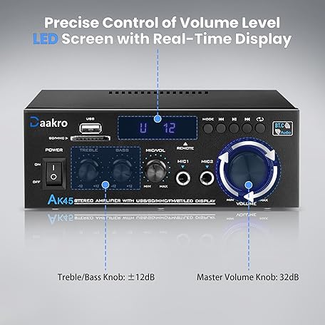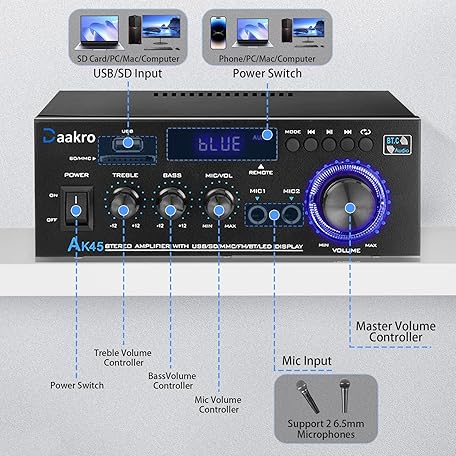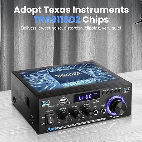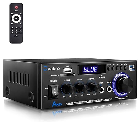 Daakro 2025 New Upgrade AK45 Home Audio Amplifier,Bluetooth Stereo Receivers,Rated Power 50W+50W Amp, TPA3116 2 Channel Power Amplifier for Home Audio Outdoor Stereo Receiver for Passive Speakers
