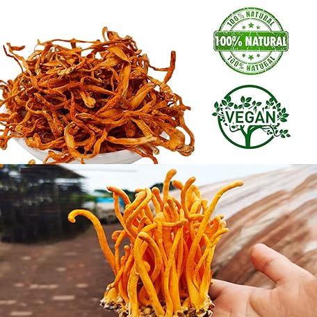 DABC OAK LAND 1 LB Cordyceps Flower, 100% Natural Dried Cordyceps Mushroom 虫草花 蟲草花 干货煲汤 Supports Energy & Immune Function for Soup/Cooking/Cooling/Tea (8oz/Bag x 2)