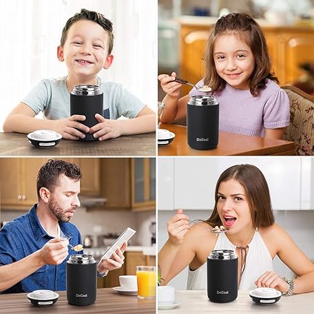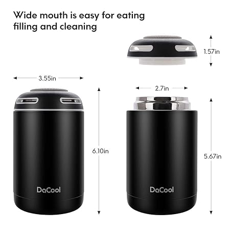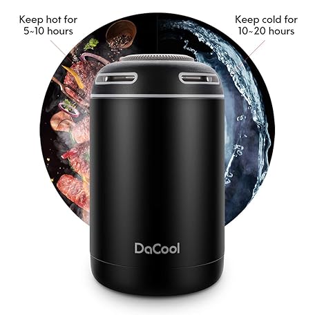 DaCool Insulated Food Jar Thermos for Hot Food 16 oz Vacuum Stainless Steel School Lunch Container for Kids Adult Keep Food Hot Container for Picnic Office Outdoors,BPA Free, Black