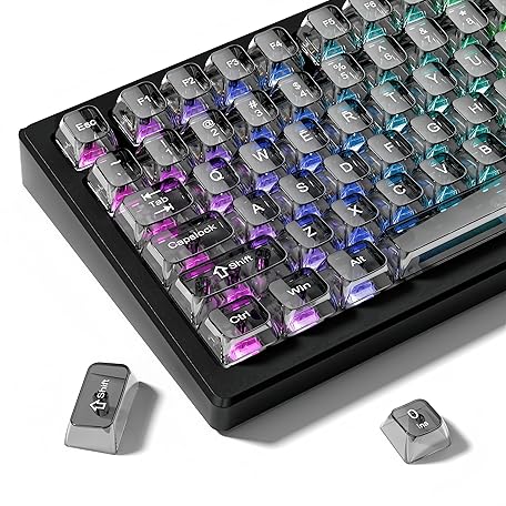 Thông tin sản phẩm dagaladoo Grey Clear keycaps,Transparent keycaps 60 75 100 Percent,Ceramic Jelly Key caps Set,Shine Through Key caps.,MDA Profile Keyboard Key Cap for Mx Switches Mechanical Keyboard(115key)