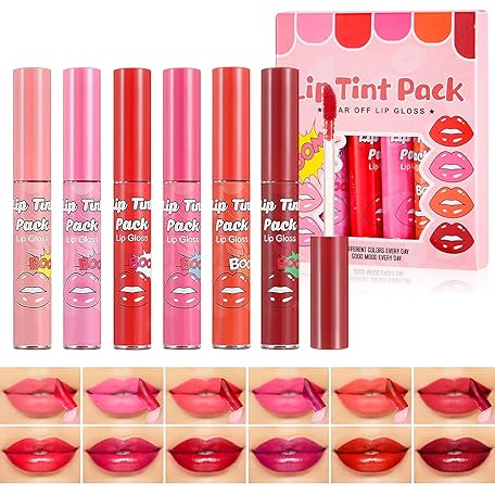 DAGEDA 6 Colors Peel Off Lip Stain Set, Waterproof Tattoo Peel Off Lip Tint, Non-sticky Lip Liner Stain Long-lasting, Matte Finish Lip Tint Stain Makeup Set