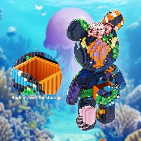DAHONPA Ocean Bear Micro Building Blocks Set (7220 Pieces), Animal Underwater World Brick with Storage Drawer, Gift for Adults and Kids