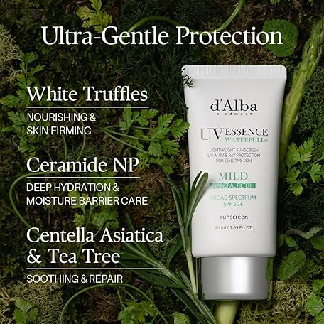 Thông tin sản phẩm d'alba Piedmont Italian White Truffle Waterfull Mild Sunscreen, Vegan, Mineral Sunscreen, BROAD SPECTRUM SPF 50+ Non-Nano Suitable for Sensitive Skin, Korean Skin Care (1.69 fl. oz)