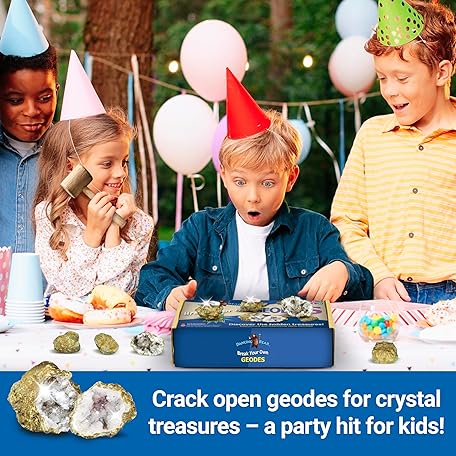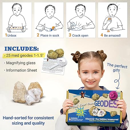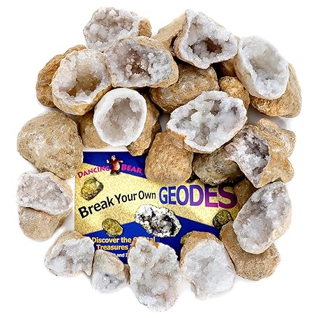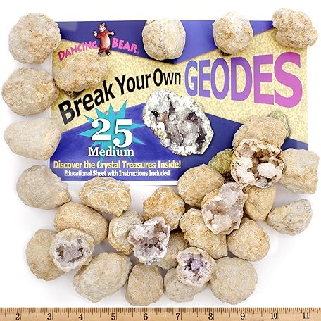 Thông tin sản phẩm DANCING BEAR DANCING BEAR 25 Break Your Own Geodes, (Medium 1-1.5") 90% Hollow, Crack Open & Discover Amazing Surprise Crystals Inside! Educational Info and Instructions Included, Fun Party Favors & Prizes