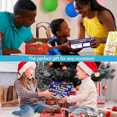 Thông tin sản phẩm DANCING BEAR Rock, Mineral & Geodes Treasure Hunt Activity Kit (250 Pc Set) Real Shark Teeth Fossils, ID Sheet & Rock Book, STEM