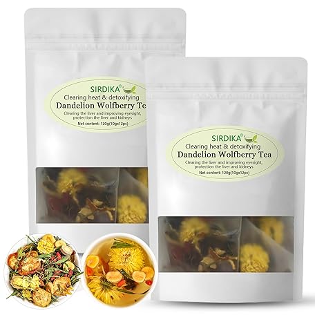 Dandelion Wolfberry Herbal Tea - Kidneys & Liver Health Tea, Seven Herbal Ingredients Natural Blend, Dandelion Wolfberry Tea Bags Organic 120g/12PC (2Bag(24Pcs))
