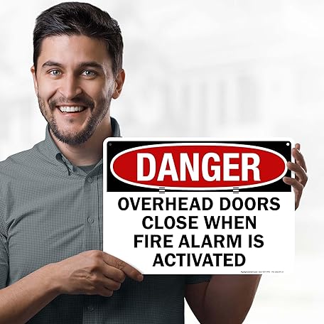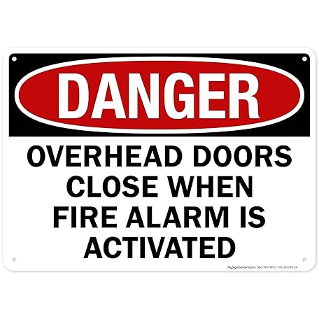 Danger Overhead Doors Close When Fire Alarm Is Activated OSHA Sign, 10x14 Inches, Rust Free .040 Aluminum, Fade Resistant, Made in USA by My Sign Center