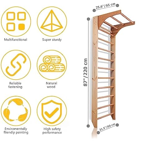 Thông tin sản phẩm Dani Active Wall Bars with Dip Bars CM-01-220, 87 in Wooden Swedish Ladder Set: Adjustable Pull Up and Dip Bars for Training and Physical Therapy - Used in Homes, Gyms, Clinic, and Schools