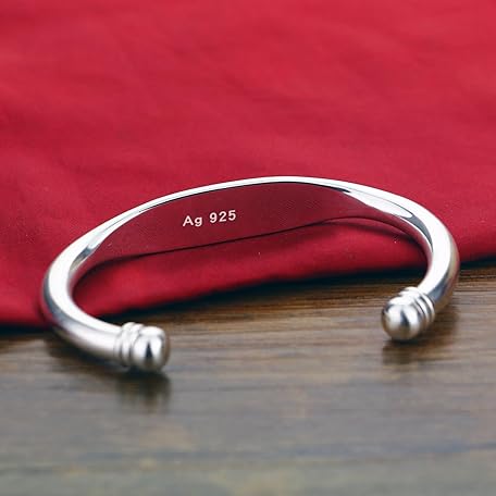 • Dankadi Unisex 925 Sterling Silver Bangle Bracelet -Simple Women Men Torque Bracelet Solid Smooth Plain Polished On Cuff Fashion Fine Jewelry Gifts