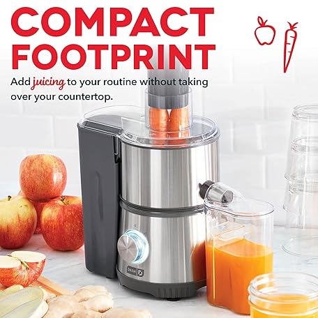 Sản phẩm Dash Compact Centrifugal Juicer, Press Juicing Machine, 2-Speed, 2" Wide Feed Chute for Whole Fruit Vegetable, Anti-drip, Stainless Steel Sieve - Cool Grey đang được bán với giá ưu đãi là $54.4891 tại nước Mỹ.