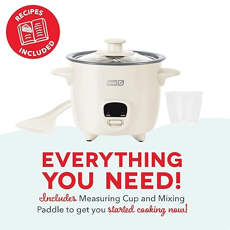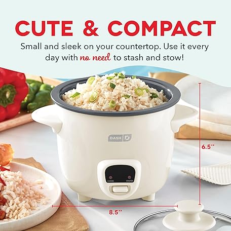 DASH Mini Rice Cooker Steamer with Removable Nonstick Pot, Keep Warm Function & Recipe Guide, .5 Quart, for Soups, Stews, Grains & Oatmeal - Cream