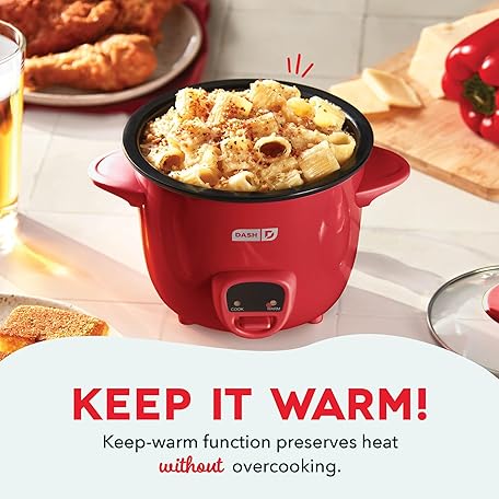 Thông tin sản phẩm DASH Mini Rice Cooker Steamer with Removable Nonstick Pot, Keep Warm Function & Recipe Guide, Half Quart, for Soups, Stews, Grains & Oatmeal - Red
