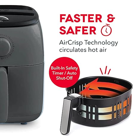 Thông tin sản phẩm DASH Tasti-Crisp™ Electric Air Fryer Oven, 2.6 Qt., Grey – Compact Air Fryer for Healthier Food in Minutes, Ideal for Small Spaces - Auto Shut Off, Analog, 1000-Watt
