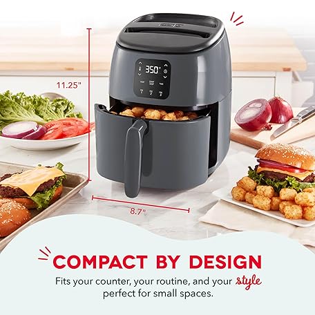 Thông tin sản phẩm DASH Tasti-Crisp™ Electric Air Fryer Oven, 2.6 Qt., Grey – Compact Air Fryer for Healthier Food in Minutes, Ideal for Small Spaces - Auto Shut Off, Digital, 1000-Watt