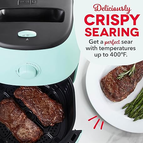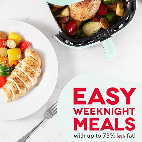 Thông tin sản phẩm DASH Tasti-Crisp™ Electric Air Fryer Oven, 6 Qt. Family Size, Aqua – Compact Air Fryer with Large Basket for Healthier Food in Minutes, Ideal for Small Spaces - Auto Shut Off, Analog, 1700-Watt