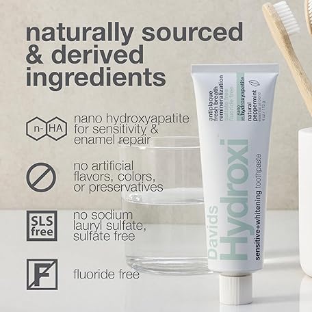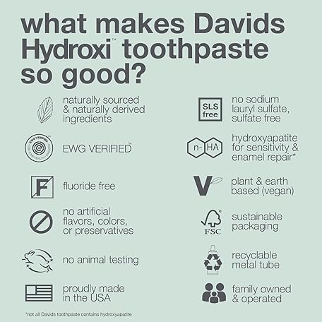 Thông tin sản phẩm Davids Hydroxi Fluoride Free Nano Hydroxyapatite Toothpaste for Remineralizing Enamel & Sensitive Relief, Whitening, Antiplaque, SLS Free, Natural Peppermint, 4 oz, Made in USA