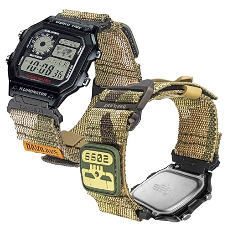 DAVILANE 18mm Military Nylon Watch Band for Casio G-Shock AE/F/W Series (AE-1200, F-91W, W-735H, DW-H5600) - Quick Release Watch Band with Swappable Patches & G-Hook Closure