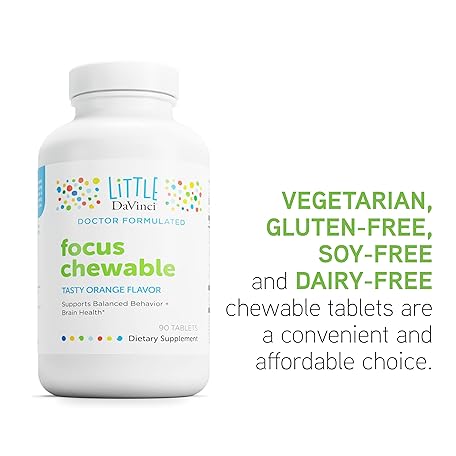 DAVINCI Labs Focus Chewable - Supplement to Support Behavior, Brain Health, and Immune Health for Kids* - with Vitamin B6, Folate, Vitamin B12, and More - Orange Flavor -Sugar-Free - 90 Tablets