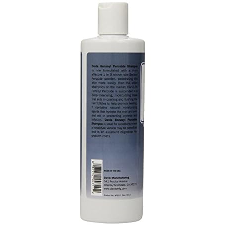 Thông tin sản phẩm Davis Benzoyl Peroxide Medicated Dog & Cat Shampoo, 12 oz. – Dermatitis and Demodectic Mange, White (DM150 12)