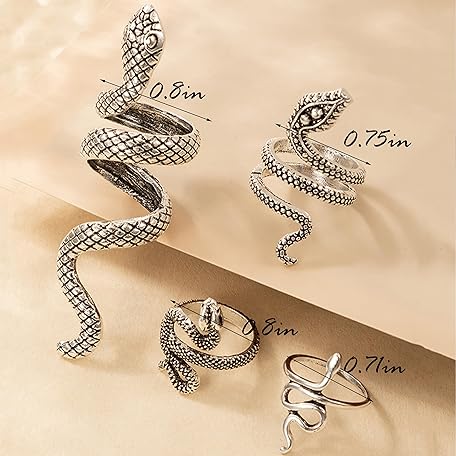 Sản phẩm Dcfywl731 Snake Ring for Women Adjustable Vintage Stackable Reptile Serpent Rings Punk Goth Jewelry Halloween Medusa Costume Accessories đang được bán với giá ưu đãi là $6.9651 tại nước Mỹ.