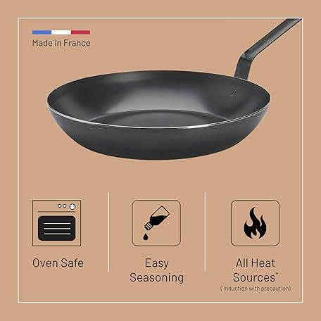 De Buyer - Blue Carbon Steel Fry Pan 2mm Thick - 12.5” Diameter, 9.13” Cooking Surface - Oven Safe - PFAS, PFOA & PFOS Free - Made in France