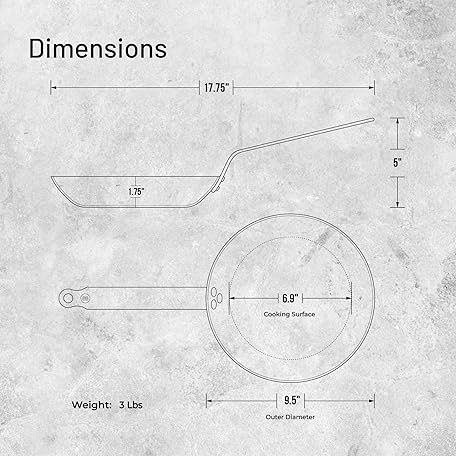 De Buyer - Blue Carbon Steel Fry Pan 2mm Thick - 9.5” Diameter, 6.9” Cooking Surface - Oven Safe - PFAS, PFOA & PFOS Free - Made in France