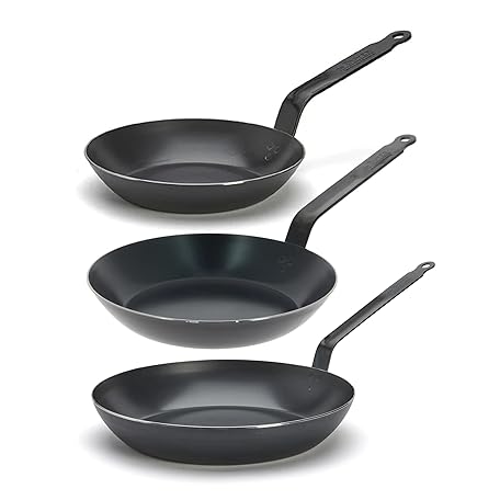 de Buyer - Blue Carbon Steel Fry Pan Bundle - 2mm Thick - Includes 3 Pans - 8”, 10.25”, and 12.5” - Oven Safe - PFAS, PFOA & PFOS Free - Made in France