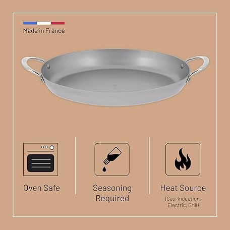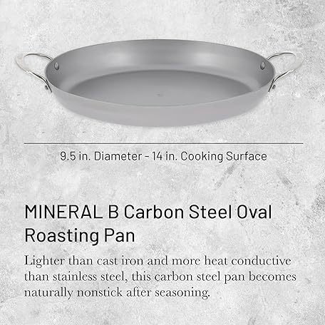 Thông tin sản phẩm de Buyer MINERAL B Carbon Steel Oval Roasting Pan - 9.5” Diameter - Ideal for Roasting Meat, Seafood & Veggies - PFAS, PFOA & PFOS Free - Made in France
