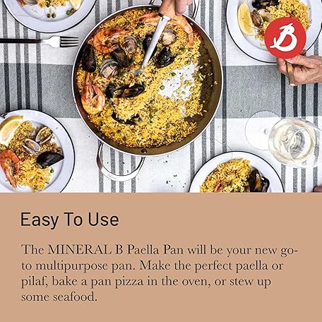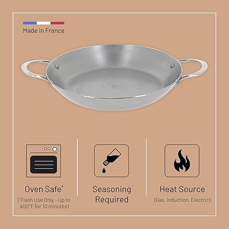 Thông tin sản phẩm De Buyer MINERAL B Carbon Steel Paella Pan - 12.5” Diameter, 9.25” Cooking Surface - Multipurpose Pan for Stovetop & Oven - PFAS, PFOA & PFOS Free - Made in France