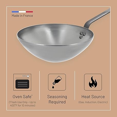 Thông tin sản phẩm De Buyer MINERAL B Carbon Steel Wok Pan - 11” Diameter - Ideal for Steaming, Stir Frying & Deep Frying - PFAS, PFOA & PFOS Free - Made in France