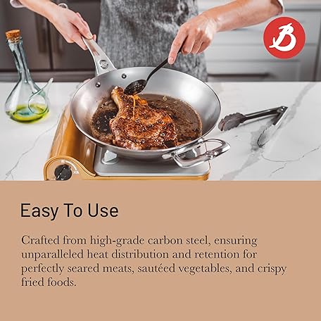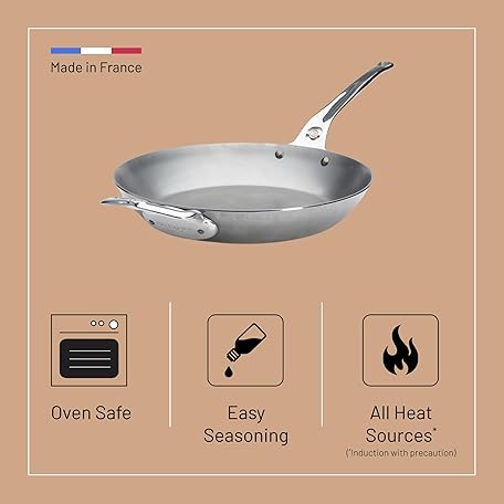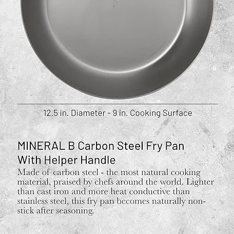 Thông tin sản phẩm De Buyer MINERAL B Pro Carbon Steel Country Fry Pan with Helper Handle - 12.5” Diameter, 9” Cooking Surface - Ideal for Sauteing, Simmering, Frying - PFAS, PFOA, PFOS Free - Made in France