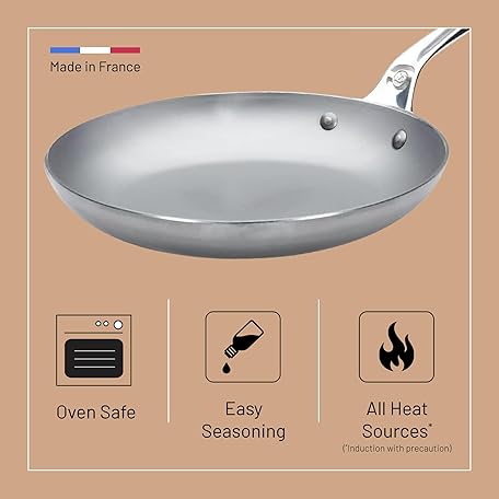 De Buyer MINERAL B Pro Carbon Steel Omelette Pan - 11” Diameter, 8.3” Cooking Surface - PFAS, PFOA & PFOS Free - Made in France