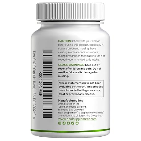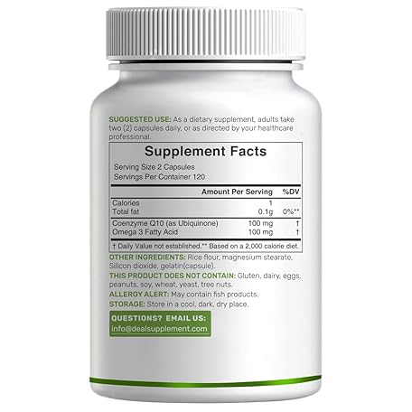 Sản phẩm DEAL SUPPLEMENT CoQ10 100mg with Omega 3 100mg, 240 Capsules | Bioavailable Coenzyme Q10 Formula | Supports Heart, Energy & Brain Health | Antioxidant Support | Non-GMO đang được bán với giá ưu đãi là $18.5191 tại nước Mỹ.