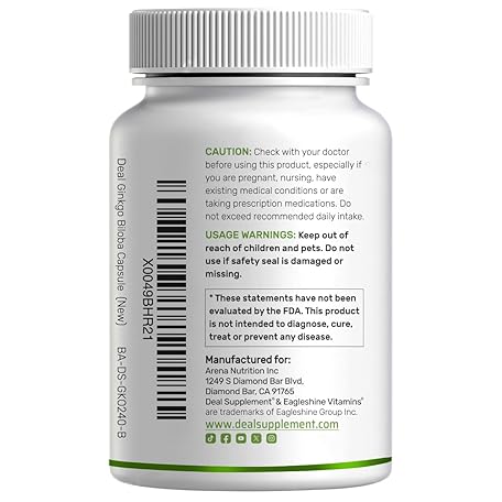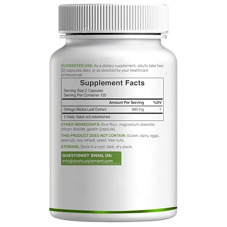 Thông tin sản phẩm DEAL SUPPLEMENT Ginkgo Biloba 500mg Per Serving, 240 Capsules, 4 Month Supply – Grown in Northern Asia – Extra Strength, Promotes Brain Function