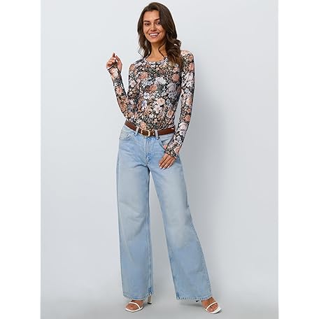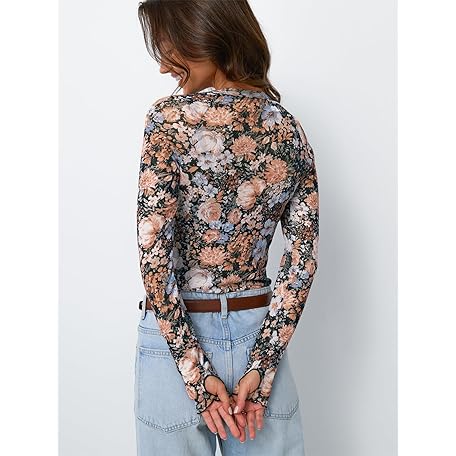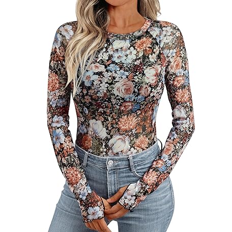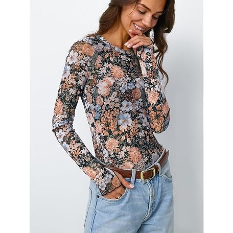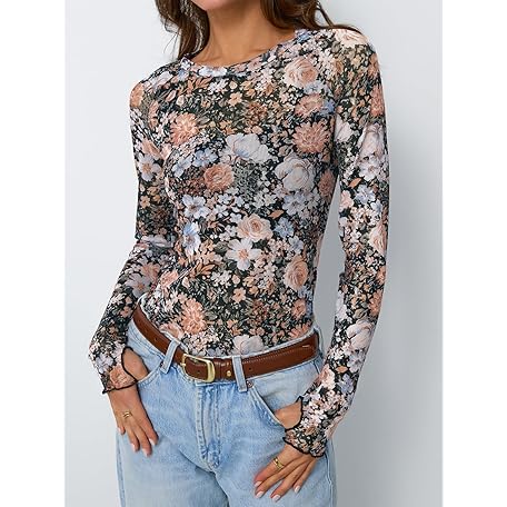 • Dealmore Womens Mesh Sheer Lace Going Out Slim Fitted See Through Tops Fall Fashion Outfits Clothes 2025