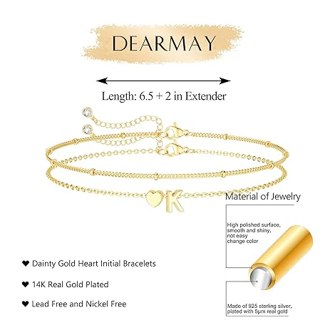 Sản phẩm DEARMAY Dainty Initial Heart 14K Gold Plated Bracelets for Women Trendy, Letter Charm Bracelet Jewelry Cute Simple Fashion Chain Gift đang được bán với giá ưu đãi là $10.8891 tại nước Mỹ.