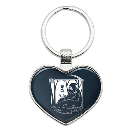 Death Grim Reaper Waiting With Hourglass Keychain Heart Love Metal Key Chain Ring