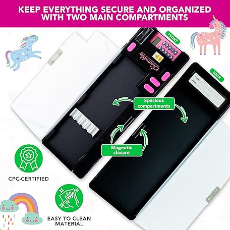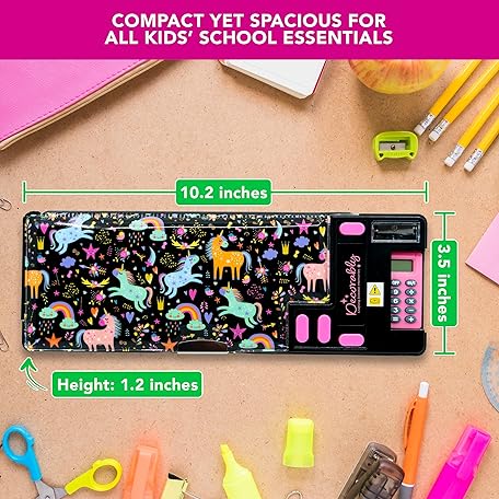 Thông tin sản phẩm Decorably Unicorn Pop Up Pencil Case with Compartments, Calculator, Sharpener, Pen Slots and Mini Drawer - Multifunctional Pencil Case for Girls with 2 Main Compartments