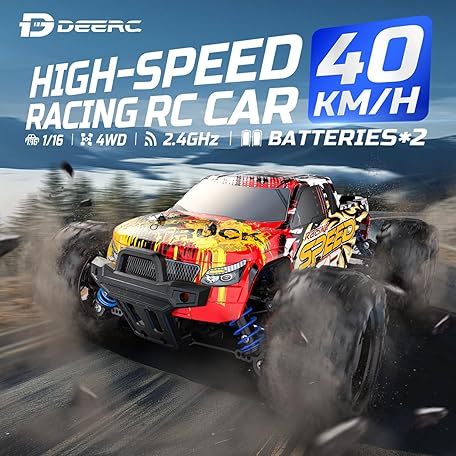 Thông tin sản phẩm DEERC RC Cars High Speed Remote Control Car for Adults Kids 30+MPH, 1:16 Scales 4WD Off Road RC Monster Truck,Fast 2.4GHz All Terrains Toy Trucks Gifts for Boys,2 Batteries for 40Min Play