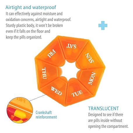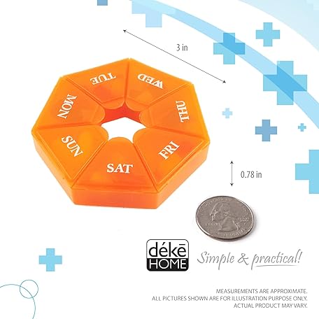 Thông tin sản phẩm Deke Home - Small Weekly Pill Organizer (2 Pack), Round Pill Dispenser for Travel, Mini Pill Organizer, Compact Medicine Holder, Pill Sorters 7 Days, Portable Vitamin Container, BPA Free (Food Grade)