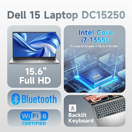 Thông tin sản phẩm Dell 15 DC15250 Laptop for Business & Student, Intel Core i7-1355U(Up to 5.0GHz), 15.6" FHD 120Hz, 32GB RAM, 1TB SSD, Windows 11 Pro, Copilot AI, Backlit Keyboard, Fingerprint Reader