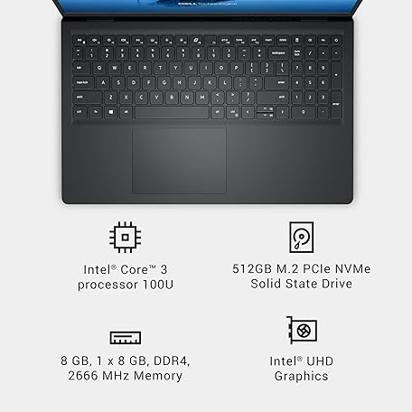 Thông tin sản phẩm Dell 15 Laptop DC15250-15.6-inch FHD 120Hz Display, Intel Core 3 Processor 100U Processor, 8GB DDR4 RAM, 512GB SSD, Intel UHD Graphics, Windows 11 Home, Onsite Service - Carbon Black