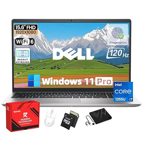 Dell 15.6 Business Student Laptop - FHD IPS Anti-Glare Display 120Hz, Intel 10-Core i7-1355U, 32 GB RAM, 1 TB SSD, Backlit KB, Webcam, Finger Print, Wi-Fi 6, Windows 11 Pro, w/Accessories