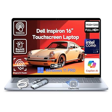 • Dell 2026 Inspiron 16 Touchscreen Laptop Computer, Intel 10-Core 7 (Faster Than i7-1355U), 64GB DDR5 2TB SSD, 16" FHD+ Touch Screen, Windows 11 Pro, Backlit Keyboard, Wi-Fi 6E