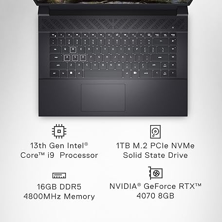 Thông tin sản phẩm Dell G16 7630 Gaming Laptop - 16-inch QHD+ 240Hz 3ms Display, Intel Core i9-13900HX, 16GB DDR5 RAM, 1TB SSD, NVIDIA GeForce RTX 4070 8GB GDDR6, Windows 11 Home, Onsite Service - Metallic Nightshade