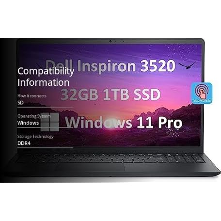 Thông tin sản phẩm Dell Inspiron 15 3000 3520 15.6" FHD Touchscreen (Intel 4-Core i5-1135G7, 32GB RAM, 1TB PCIe SSD, UHD Graphics) Business Laptop, WVA Anti-Glare, Numeric Keypad, Webcam, Wi-Fi, Win 11 Pro, Black