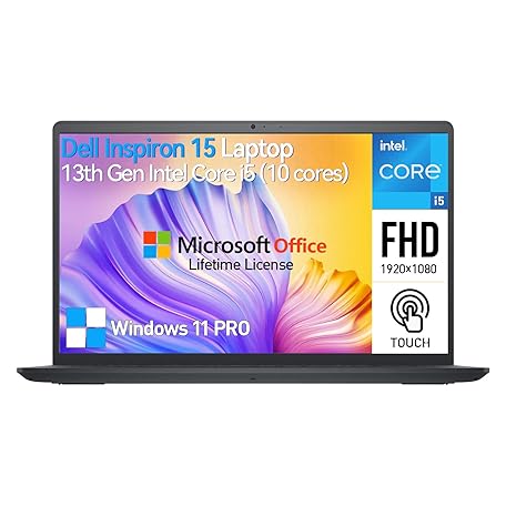 • Dell Inspiron 15 3000 Touchscreen Laptop Computer, 15.6" FHD IPS Touch Screen Business Laptop PC, 13th Gen Intel Core i5 (10-Cores), Windows 11 Pro | Lifetime Office | 10-Key | 64GB RAM 1TB SSD