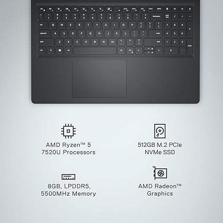 Thông tin sản phẩm Dell Inspiron 15 3535 Laptop - 15.6-inch FHD (1920 x 1080) Display, AMD Ryzen 5 7520U Processor, 8GB DDR4 RAM, 512GB SSD, AMD Radeon Graphics, Windows 11 Home, 6-Months Migrate - Carbon Black